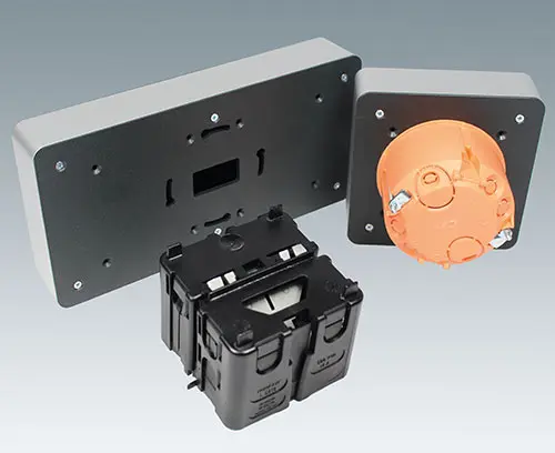 The modern TAB4.0 series panels are highly versatile in use, e.g. as control panels and remote control solutions for individual rooms. The installed components and the imprinting can be customised. If you have to change the specification of one module, the old self-adhesive label can be easily and economically replaced by a new one. Surface-mounted and flush-fitting versions are available. Installation in a cable duct is possible, as is installation on a DIN rail.