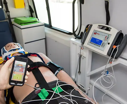 ECG simulation system for preclinical use. The instructor control function allows realistic deviations such as extrasystoles, arrhythmia and sources of interference to be displayed on the monitor in real time. In contrast to a linear sequence, spontaneous, unexpected changes in the patient profile guarantee special realism and genuine stress situations for the rescue teams.