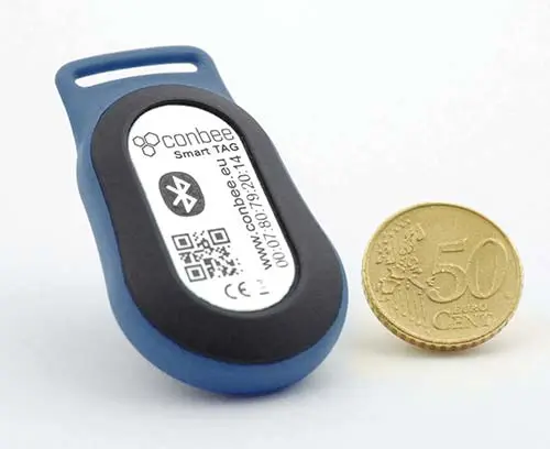 The conbee Smart TAG is based on the Bluetooth 4.x specification with a range of up to 150 m. The fully configurable TAG has an authentication function using out-of-band or SecureSimple pairing, is forgery-proof and has a motion sensor that is capable of recognising manipulation attempts. Status data are transmitted at dynamically adaptable transmission intervals in advertisement packets that provide information about the object to be tracked. The intelligent TAG cyclically reports its identification number, temperature and movement data as well as battery status and optionally also its position.