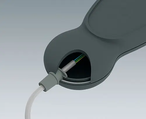 For universal use. The push-on cable gland forms an attractive connection with cable-linked applications. Cylindrical hole required.
