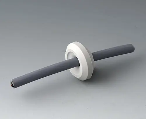Simple cable grommet, easy to install, with easy-to-pierce membrane. Tight fit as soon as the cable is pulled backwards a little. Free of halogens. Suitable for wall thicknesses from 0.5 - 3 mm and for cable diameters from 6 - 13 mm. Operating temperatures from -40°C to +100°C. Borehole ø 20.5 mm.