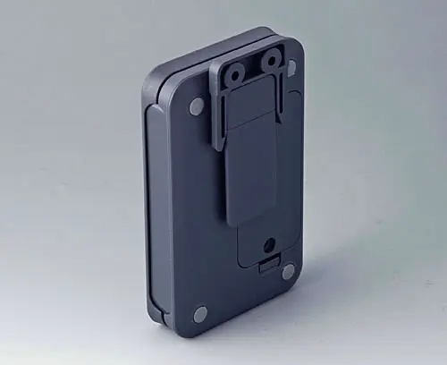 Serves as a clip and / or wall suspension. Assembly oriented towards the length or width (size S towards the length only). For a battery exchange, the clip can easily be removed. Two mounting holes diameter 4.2 mm necessary.