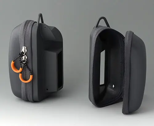 Specially designed for CARRYTEC M. Protects enclosure, cables and sensors. Consists of a moulded plastic part and hard-wearing textile fabric, with a practical zip fastener for fast access. Integrated recesses in the sides of the enclosure for connecting instruments, which are then ready for immediate use. Easy to attach to the screwed connection in the enclosure. Eyelet on the top for carrying with the shoulder strap (separate article, see Accessories).