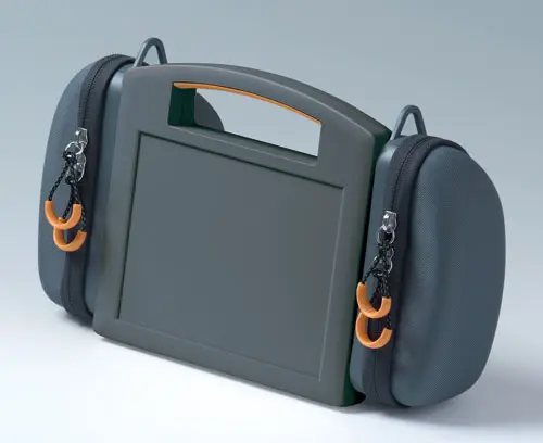 CARRYTEC M Particularly robust plastic enclosure with handle for outdoor use. Recessed surface for membrane keyboards. Flat, impact-protected areas on the bottom part of the enclosure for installing interfaces, plug-in connectors, peripheral equipment etc. Interface installation at the rear, e.g. support arm applications, ensures orderly cable routing through enclosure connection. Attachment domes for PCBs and components in the top and bottom parts. Stations for easy transmission of data and charging current, as well as battery compartment 5 x AA (processing on request) as an accessory.
