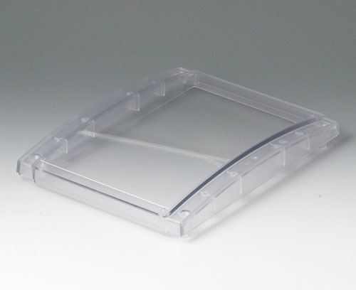 Cover L, convex Suitable for DATEC-TERMINAL L, basic housing vers. I, II, III. For protecting the electronics. Recessed operating area (1 mm) for protecting the membrane keyboard. With screw pillars for PCB fixing. Cover strips in transparent or off-white necessary as separate article. Fixing of vers. I from the front by 4 screws.