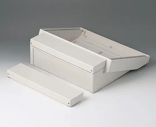 DATEC-TERMINAL L, Vers. III Basic case with terminal compartment. Ergonomically inclined operating area can be used with front panel, profile plate or cover. Suitable to accommodate Eurocards.