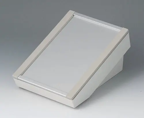DATEC-TERMINAL S Basic case with ergonomically inclined operating area can be used with profile plate, cover or front panel. Suitable to accommodate Eurocards 100 x 160 mm.