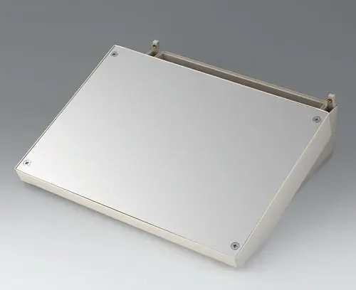 DATEC-TERMINAL L, Vers. I Basic case with terminal compartment. Ergonomically inclined operating area can be used with front panel, profile plate or cover. Suitable to accommodate Eurocards.