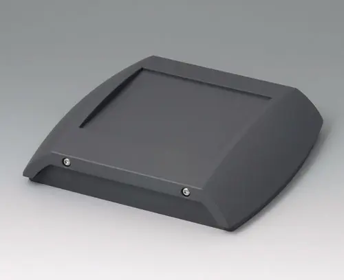 Two-part case. The bottom part can be fixed directly to the wall, the top part is fixed by Torx T10 stainless steel screws from above or below. Recessed operating area to protect the membrane keyboard. Fastening pillars for PCB in the bottom and top parts. Integrated battery compartment for 2 x AA.