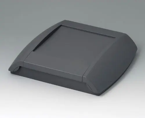Four-part case. The bottom part can be fixed directly to the wall, the top part will be assembled by means of screws from the front. 2 side trims close the case. If required, the trims can also be locked, thus preventing unauthorised access. Recessed operating area to protect the membrane keyboard. Fastening pillars for PCBs in bottom and top part. Integrated supports for 2 x AA / 1 x 9 V.