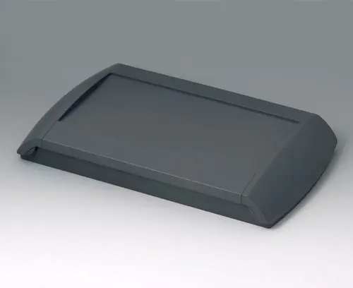 Four-part case. The bottom part can be fixed directly to the wall, the top part will be assembled by means of screws from the front. 2 side trims close the case. If required, the trims can also be locked, thus preventing unauthorised access. Recessed operating area to protect the membrane keyboard. Fastening pillars in the bottom and top part. Integrated supports for 2 x AA / 1 x 9 V. If required the hinged lid S can be mounted either on the right or on the left to partially cover the dialog area (on one side).