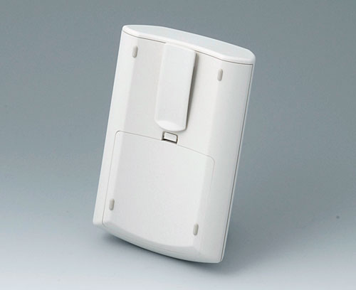 ERGO-CASE M, high Ergonomically shaped enclosure to wear on the body. Recessed operating area in order to protect the membrane keyboards. Plane area for individual interfaces at the end side. Battery compartment lid snapped-on (battery compartment as accessory).