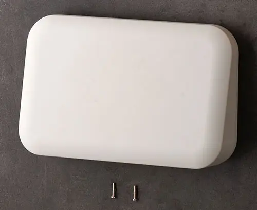 The adapter (106 x 75 mm) is attached to the bottom part of the enclosure by 4 screws. 4 boreholes ø 3.5 mm are required. The adapter makes it possible to clip the enclosure quickly and easily into the holder mounted on the wall. Optionally, the parts can be secured with 2 screws, thus offering additional protection against removal.