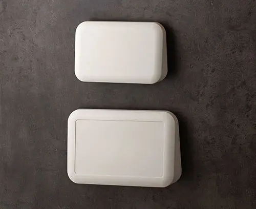 EVOTEC 200, Vers. I 2-part plastic enclosure with flat top part. Robust design with tongue and groove connection. Case assembled with Torx drive stainless steel screws. Seal for protection class IP 65 available as an accessory. Fastening pillars for PCBs and components in the top and bottom parts. Wall suspension element ordered separately.