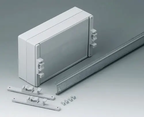 For fastening the cases to DIN-rails according to DIN EN 60715 TH35. For ROBUST-BOX width 120.