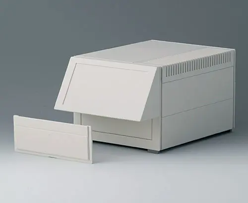 MEDITEC E 220, without handle bar Complete case. Ideally suited to accommodate single-Eurocards 100 x 220 mm or 100 x 160 mm. Two identical shells are joined together so that they overlap. Side trims easily fitted. Non-slipping case feet are fixed by screws to ensure a firm and stable support.