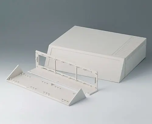 Ergonomically sloped operation front. 2-part construction for easy access of components. Recessed area for membrane keyboards. Reading angle wall: 60°, desk top 30°.