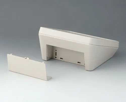 Modern three piece plastic enclosure with an ergonomically inclined operating panel. The snap-on cover included in the supply makes it possible to close the deep recessed interface area at the rear both visually and/or to install additional electronics in a separate area. Fastening pillars for PCBs and components in the top and bottom parts. Wall suspension element and sealing (to raise the protection class up to IP 65) included in the range of accessories. Hidden stainless steel assembly screws with secure Torx heads. Can also be used outdoors thanks to the high-quality material and the robust design.