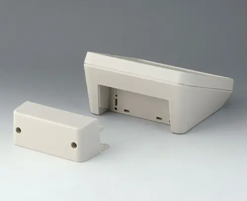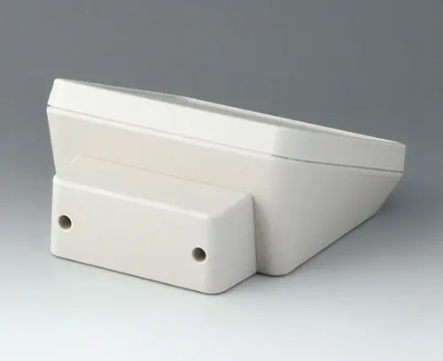 Modern three piece plastic enclosure with an ergonomically inclined operating panel. The deep cover included in the supply provides additional space in a separate area. Fastening pillars for PCBs and components in the top and bottom parts. Wall suspension element and sealing (to raise the protection class up to IP 65) included in the range of accessories. Hidden stainless steel assembly screws with secure Torx heads. Can also be used outdoors thanks to the high-quality material and the robust design.