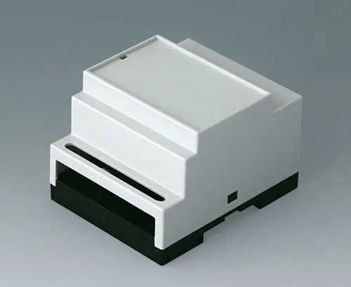Enclosure for applications where larger components/assemblies need to be fitted inside. Different connection levels flat or high for individual configuration. Case corresponds to DIN 43880, size 1. Simple and quick assembly by locking onto DIN-rails EN 60715 TH35. Base part with fixing pillars for the PCB. Vertical and horizontal guides for additional PCBs.