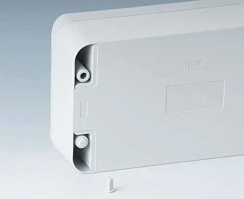 SMART-BOX WIDTH 130 Four-part plastic enclosure, ideal for design orientated electrical and electronic applications. The sealing is already prefitted in the top. Screw fixing outside of the sealing area. Resessed operating area to protect the membrane keyboard. Fastening pillars for PCBs and DIN-rails.