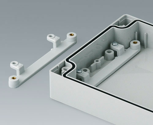 ROBUST-BOX WIDTH 120, Vers. I Robust plastic enclosure, ideal for electrical and electronic applications. Case shells either usable as top or base part. Each case part contains threads and fixing towers. Screw fixing outside of the sealing area. Recess of approx. 0.8 mm for use of membrane keyboards.