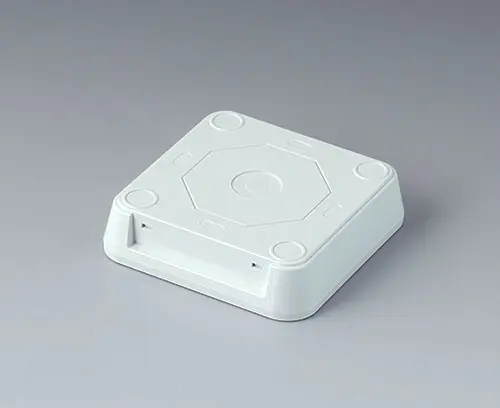 Elegant two-part plastic enclosure with flat top part. Fastening pillars for PCBs and components in the top part. Bottom part with a series of pre-moulded cut-outs for assembly on standard flush-mounted/cavity wall boxes (machining required). Secure snap-in assembly of top and bottom parts. Rational assembly of the electronics. To open the enclosures easily and practically, we recommend that you use the opening tool set, which is available as an accessory. Recessed operating area protects a membrane keyboard or glass control panel. Resin hardboard protection plate, glass panel, adhesive foil and opening tool available as accessories. Due to the high-quality material (UL 94 V-0) and the elegant design, perfect for use in modern building services technology.