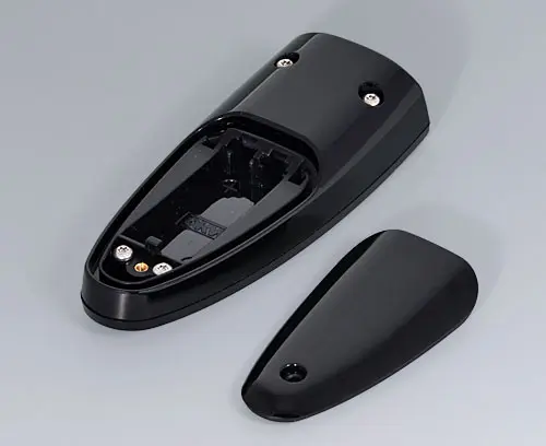 Three-piece hand-held enclosure with an ergonomic, robust design and a pleasant touch sensation. Protection class IP 40 without sealing kit. Attachment pillars for PCBs and components in the top and bottom parts.