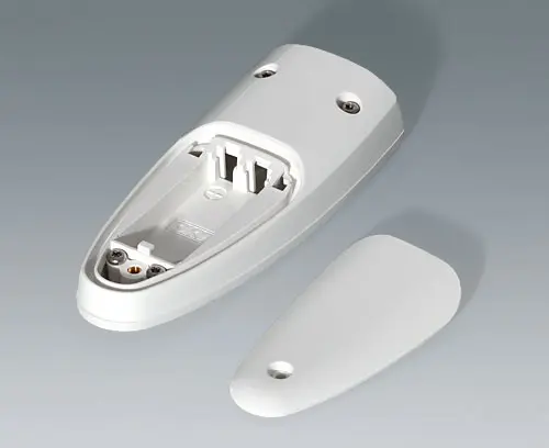 Three-piece hand-held enclosure with an ergonomic, robust design and a pleasant touch sensation. Protection class IP 40 without sealing kit. Attachment pillars for PCBs and components in the top and bottom parts.