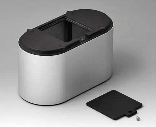 4-part enclosure for many different applications. Sturdy frame made of aluminium, glass bead-blasted and anodised. Plastic parts made of ASA+PC-FR with high UV protection and high flame resistance. Attachment domes for PCBs and components in the top and bottom parts. Top part with recessed surface to protect the membrane keyboard. Bottom part with opening and screw-down cover: practical for the use of a battery compartment or for access to the interior, e.g. for a memory card or batteries that are mounted directly on the PCB. Battery compartment kit 4 x AA with contact springs, battery clips, button cell holder and wall mounting option as accessories.