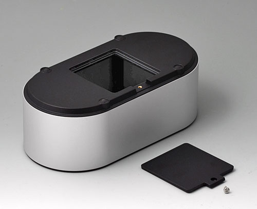 4-part enclosure for many different applications. Sturdy frame made of aluminium, glass bead-blasted and anodised. Plastic parts made of ASA+PC-FR with high UV protection and high flame resistance. Attachment domes for PCBs and components in the top and bottom parts. Top part with recessed surface to protect the membrane keyboard. Bottom part with opening and screw-down cover: practical for the use of a battery compartment or for access to the interior, e.g. for a memory card or batteries that are mounted directly on the PCB. Battery compartment kit 4 x AA with contact springs, battery clips, button cell holder and wall mounting option as accessories.