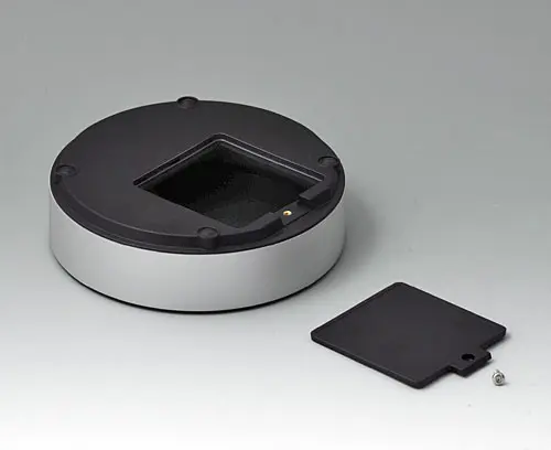 4-part enclosure for many different applications. Sturdy frame made of aluminium, glass bead-blasted and anodised. Plastic parts made of ASA+PC-FR with high UV protection and high flame resistance. Attachment domes for PCBs and components in the top and bottom parts. Top part with recessed surface to protect the membrane keyboard. Bottom part with opening and screw-down cover: practical for the use of a battery compartment or for access to the interior, e.g. for a memory card or batteries that are mounted directly on the PCB. Battery compartment kit 4 x AA with contact springs, battery clips, button cell holder and wall mounting option as accessories.