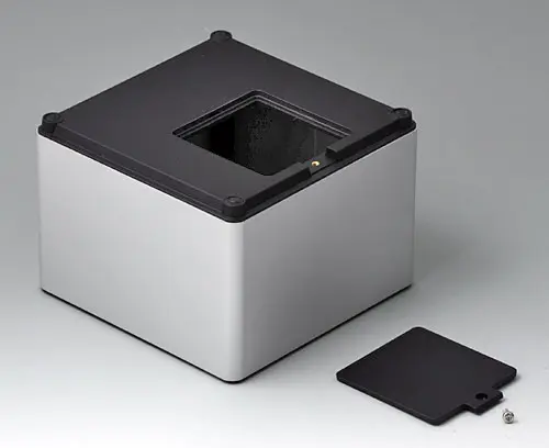 4-part enclosure for many different applications. Sturdy frame made of aluminium, glass bead-blasted and anodised. Plastic parts made of ASA+PC-FR with good UV resistance and high flame resistance. Attachment domes for PCBs and components in the top and bottom parts. Top part with recessed surface to protect the membrane keyboard. Bottom part with opening and screw-down cover: practical for the use of a battery compartment or for access to the interior, e.g. for a memory card or batteries that are mounted directly on the PCB. Battery compartment kit 4 x AA with contact springs, battery clips, button cell holder and wall mounting option as accessories.