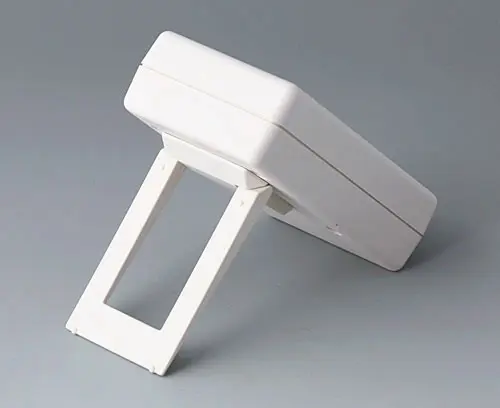 HAND-HELD-BOX P, Vers. I Design: Successfully used case for measuring instruments. With recessed area for imprintings or your logo. Cut-out section for LCD or analogical modules. With battery compartment, accessible from the outside, for 9 V flat battery (PP3) or 1.5 V baby cell (C) with contacts for soldering. Raised front area to accommodate plugs.